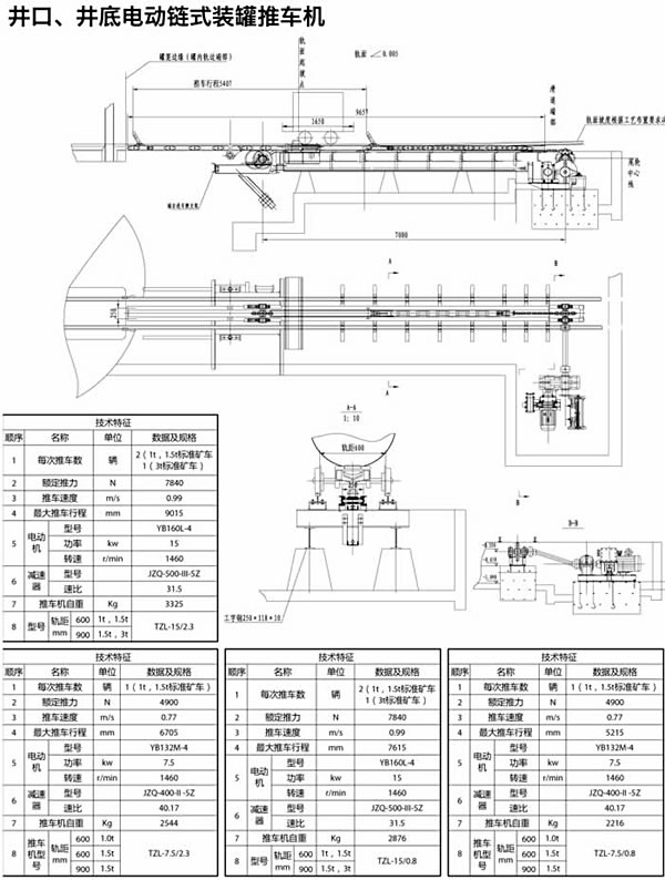 推車機主要通過推車裝置執行井口車場或井底車場的車輛從待調轉區調度到轉運區,使車輛進入運行狀態。